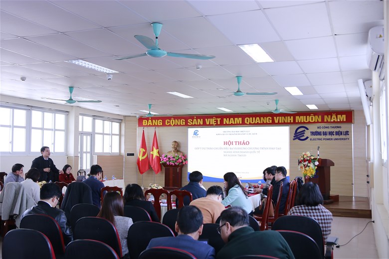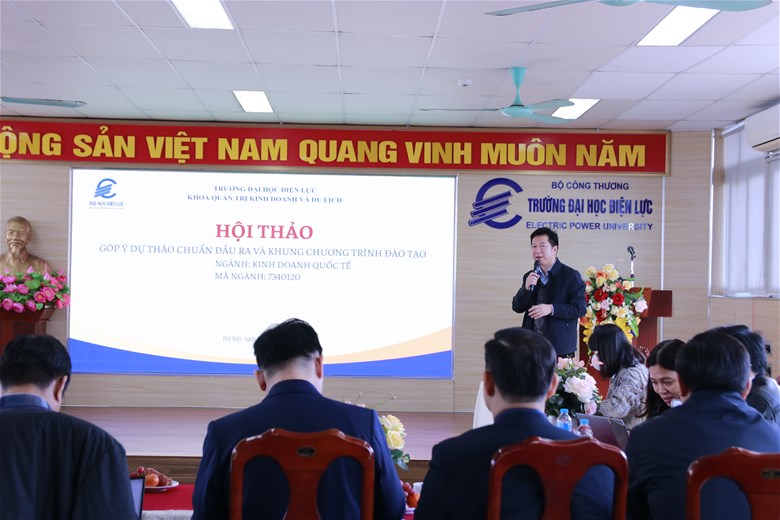 Nhằm báo cáo và lấy ý kiến góp ý đối với chuẩn đầu ra và khung chương trình đào tạo trình độ đại học ngành Kinh doanh quốc tế, Khoa Quản trị Kinh doanh và Du lịch - Trường Đại học Điện lực (EPU) đã tổ chức Hội thảo Chuẩn đầu ra và Khung chương trình đào tạo ngành Kinh doanh quốc tế năm 2025 vào 9h00 ngày 07/01/2026 tại Hội trường M, Trường Đại học Điện lực.