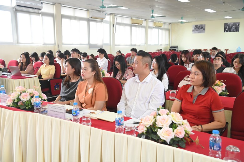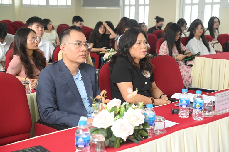Hội thảo có sự tham dự của ThS. Chu Văn Tuấn - Phó Giám đốc Trung tâm TQĐ; TS. Nguyễn Thị Kim Thanh - Phó Trưởng khoa Quản trị Kinh doanh và Du lịch, cùng các giảng viên và sinh viên các lớp D17. Đại diện Công ty TH Eduinterns, bà Lê Thị Thanh Huyền - Tổng Giám đốc, đã chia sẻ nhiều thông tin bổ ích về cơ hội thực tập, môi trường làm việc và các kỹ năng nghề nghiệp cần chuẩn bị.